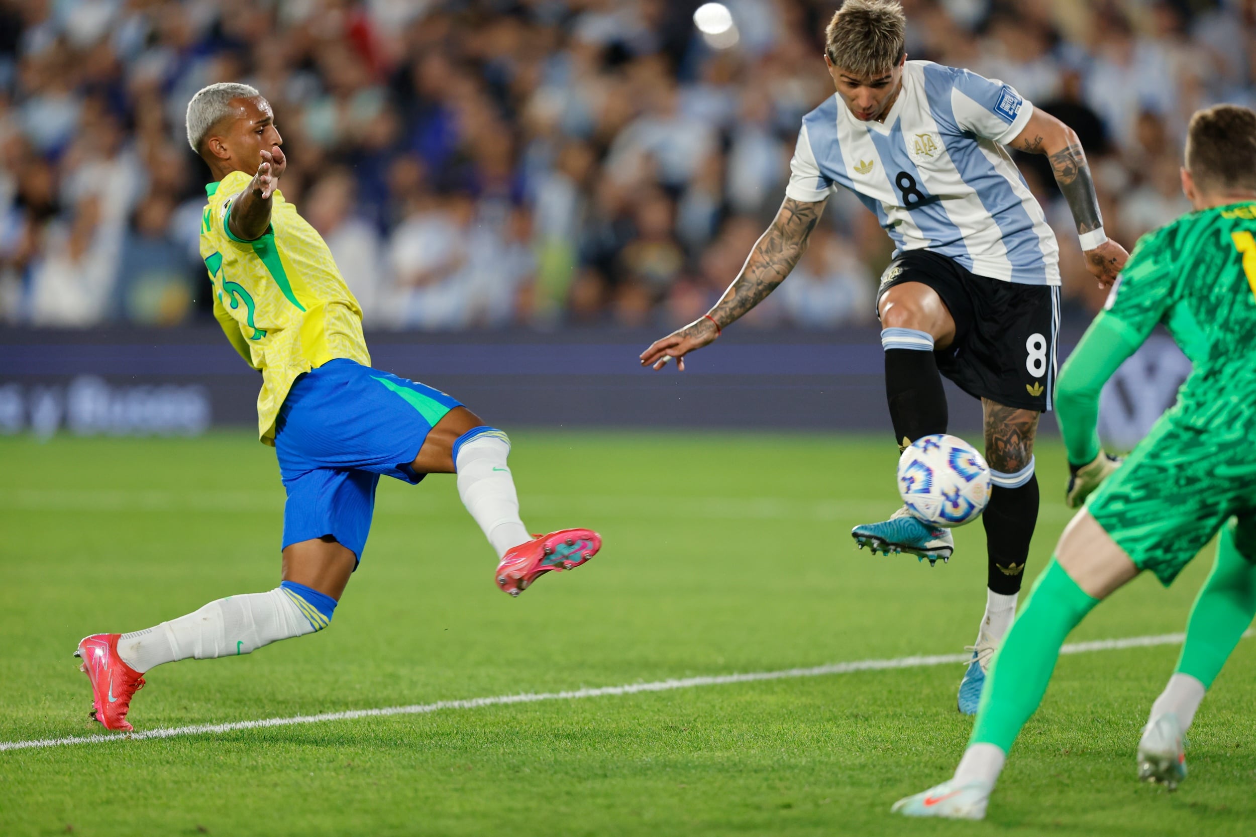 Luego, un error de Cristian Romero, que retuvo demasiado el balón cerca de su área, facilitó el descuento de Brasil, pero al rato Alexis Mac Allister desniveló con un toque en una congestionada área frente a la salida del arquero.