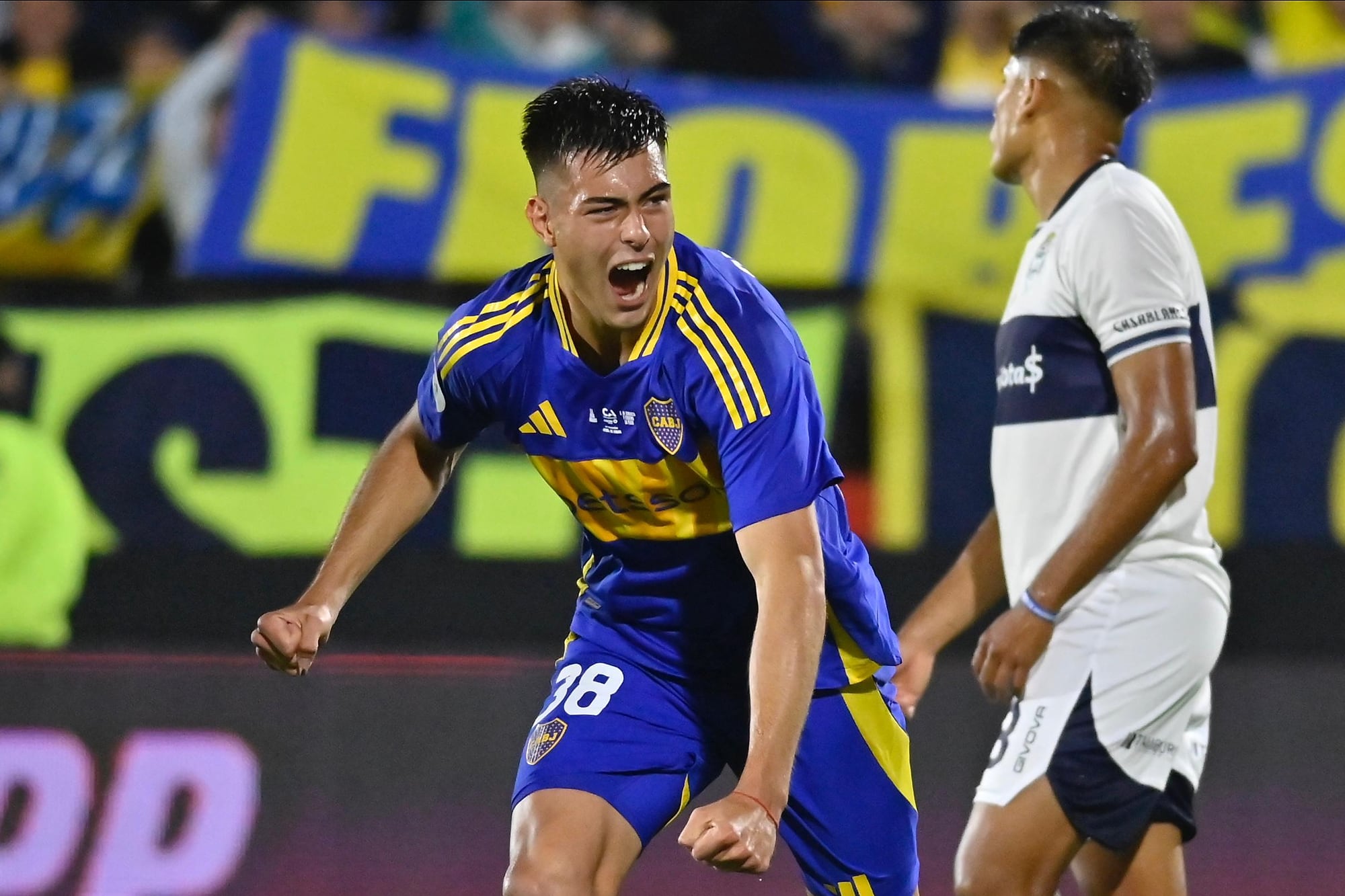 Aaron Anselmino abre el marcador con un lindo cabezazo en el corazón del área luego de un centro de Advíncula desde la derecha. Boca se pone rápido en ventaja en Rosario ante Gimnasia.