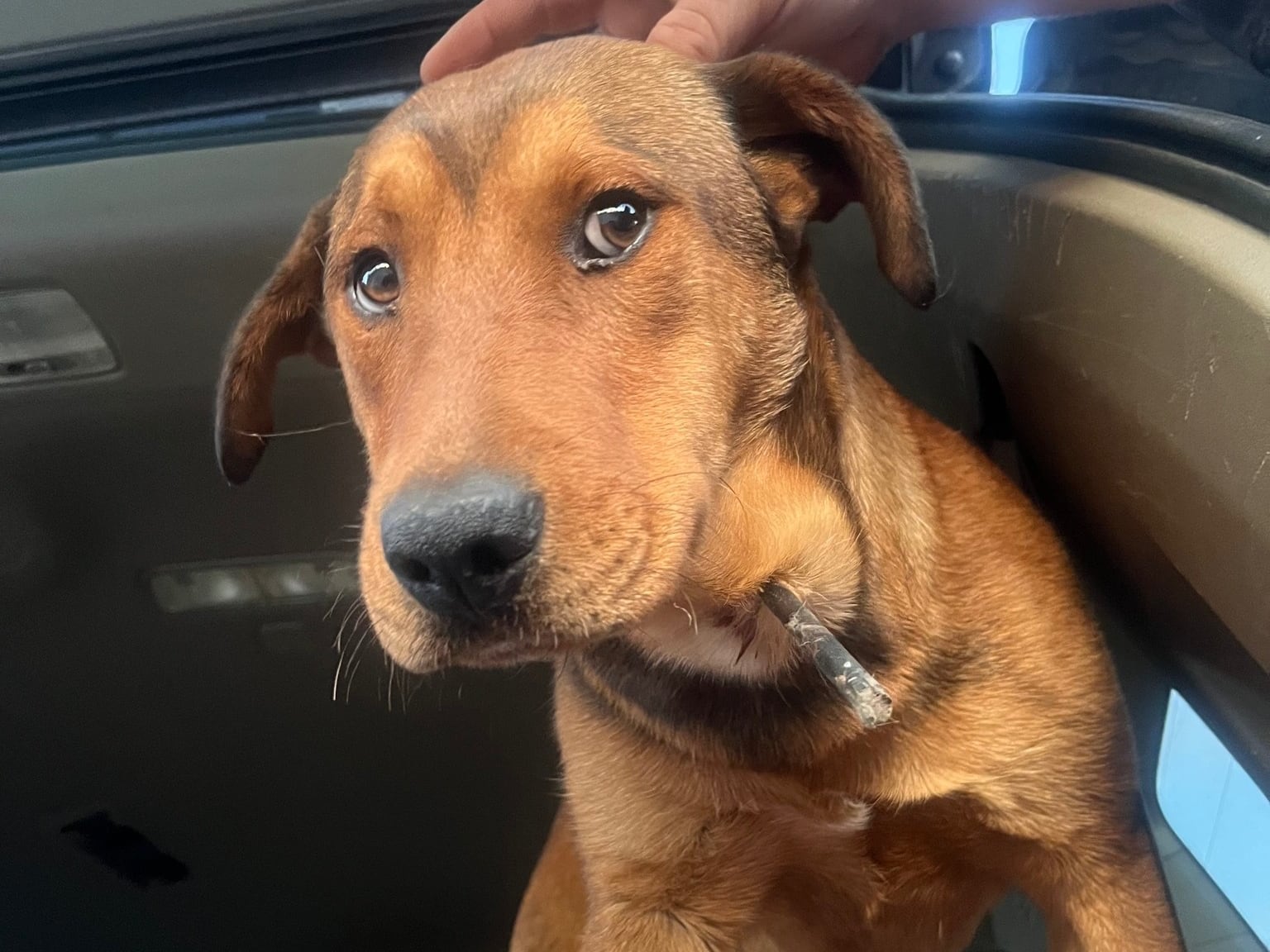 Cuando llegó al consultorio veterinario todos quedaron impactados por la imagen que tenían frente a sus ojos. Esa misma mañana, lo habían encontrado en East Prairie, en Missouri, con una flecha que atravesaba su garganta.