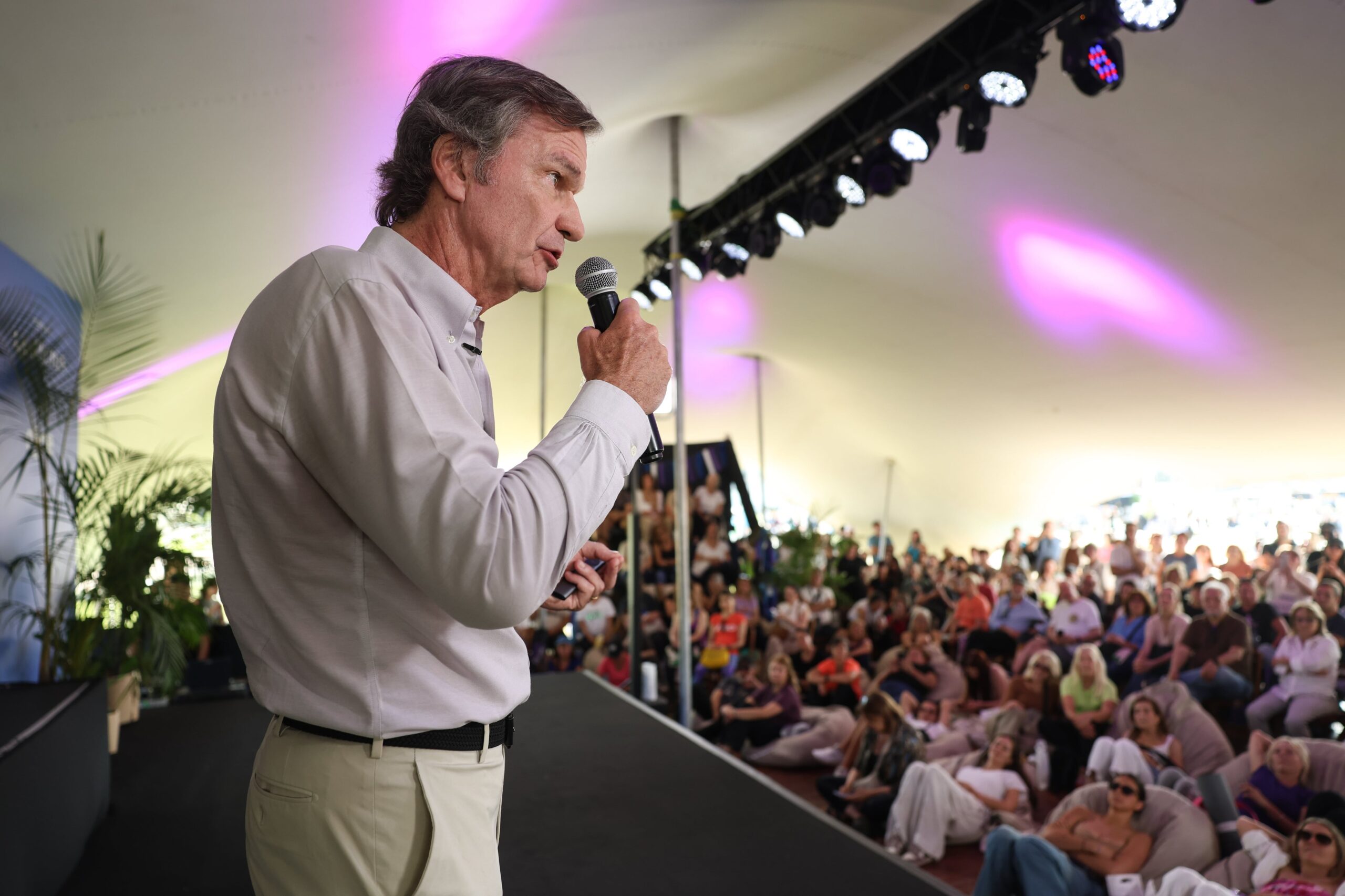 En el Espacio Inspiración, no quedaba ni una silla ni un puff libre: la charla de Estol sobre qué cambiar de tu rutina para vivir mejor convocó a una multitud. La carpa beduina desbordaba de gente que se acercaba a escucharlo después de haber bailado con Dafne Schilling.