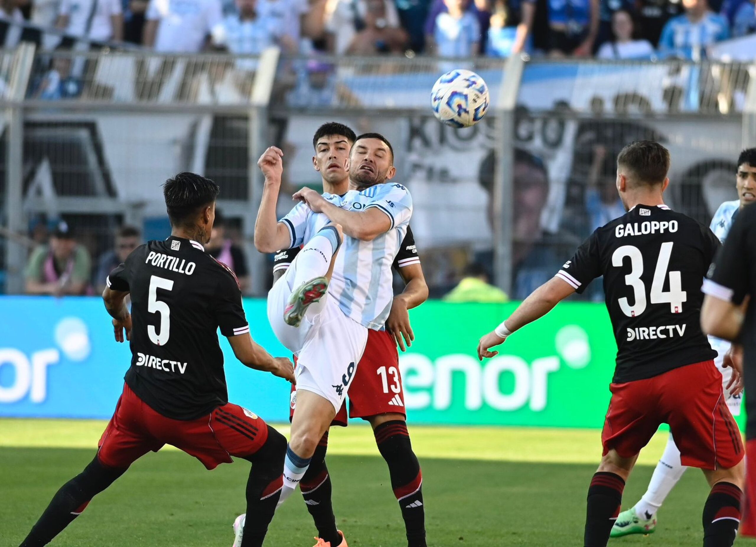 Gallardo escondió las dudas en la formación hasta el final, pero al final salió a jugar con un esquema 4-1-4-1 con Armani; Montiel, Martínez Quarta, Rivero y Acuña; Portillo; Juanfer Quintero, Castaño, Galoppo y Colidio; Salas.