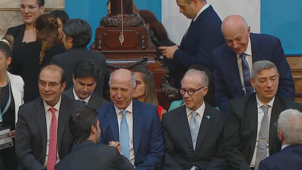 El ministro de Justicia, Mariano Cúneo Libarona, que estaba sentado junto a Luis “Toto” Caputo, apenas si fue nombrado por Milei cuando mencionó a todo el gabinete y no le dedicó un elogio especial, como sí lo hizo con el ministro de Economía, con Federico Sturzenegger, con Patricia Bullrich y hasta con el vocero Manuel Adorni.