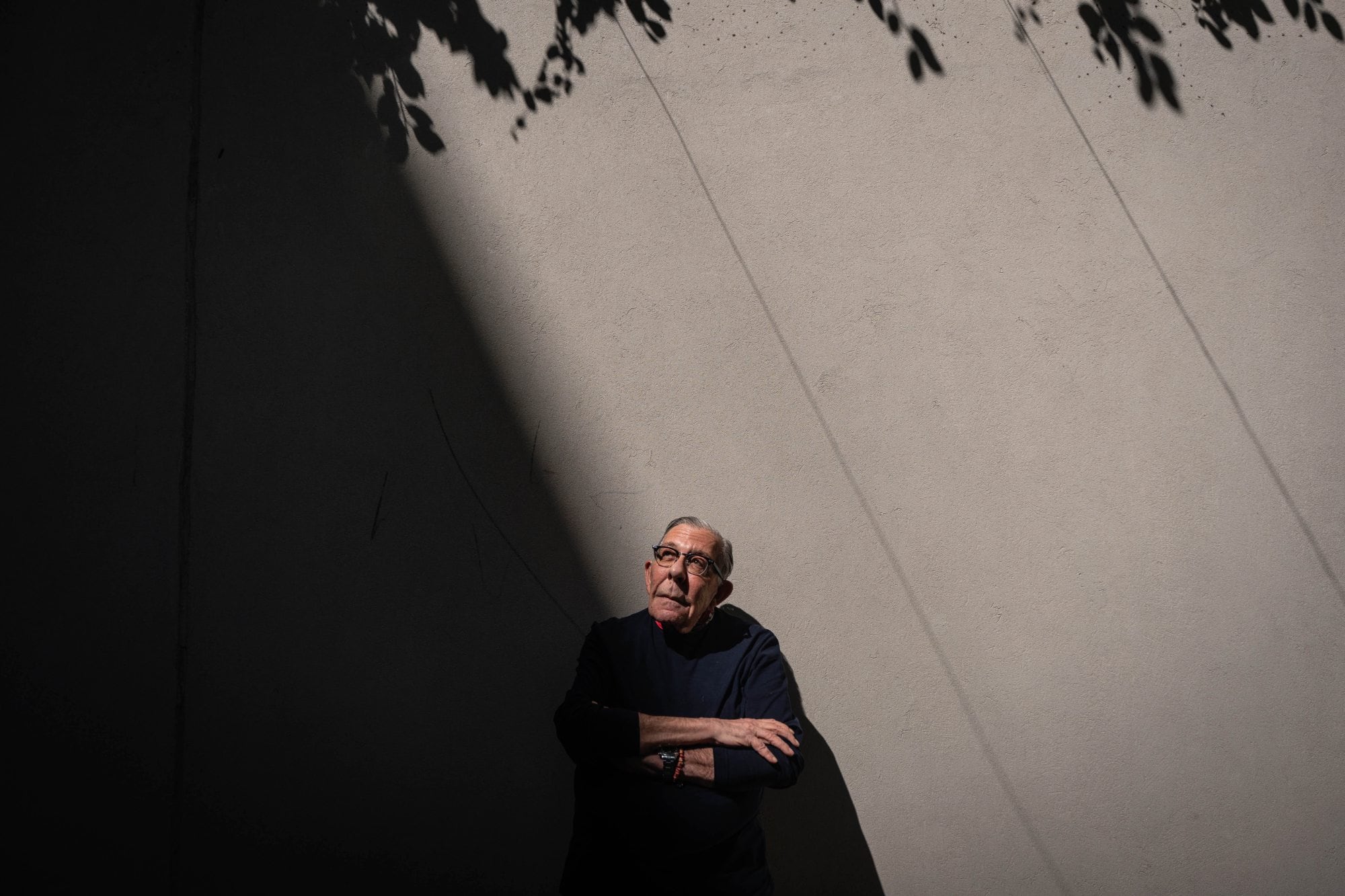 De regreso a Buenos Aires, aguarda en el jardín de una cafetería de Barrio Norte, enfundado en un pantalón de gabardina color arena, suéter azul impoluto, un pañuelo con diseños rojos de su factoría y una pulsera plagada de diminutos amuletos. Se advierten la denominada “manito negra” y un “ojo griego”, ambos aliados, justamente, contra el mal de ojo.