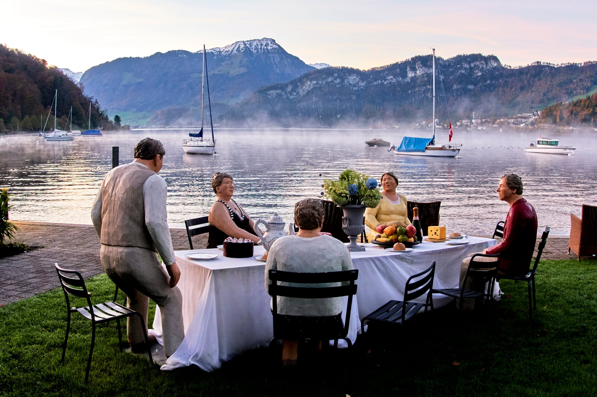 Vista en los escasos segundos que solemos conceder a un scrolleo en Instagram, esta foto podría llamar a engaño y asomar como el simple registro de un grupo de personas almorzando cerca de un lago. Pero, si se mira bien, se verá que en realidad lo que hay allí es una intervención escultórica. Everyday people se llama la obra y sus creadoras, las suizas Laura y Christel Lechner, no solo son madre e hija, sino también unas decididas defensoras del encanto que asoma en las personas comunes y sus gestos cotidianos. “Para mí, una vida siendo vivida es la más humana forma de belleza”, afirma Christel en su página web. “Me interesa lo que conecta a la gente -explica, por su parte, Laura-. El arte de la gente común genera un cambio de perspectiva”. Cuerpos plácidos, el placer de la sobremesa, tiempo a disposición: las Lechner recrean un mundo que para buena parte de este planeta, más que cotidiano es utópico.
