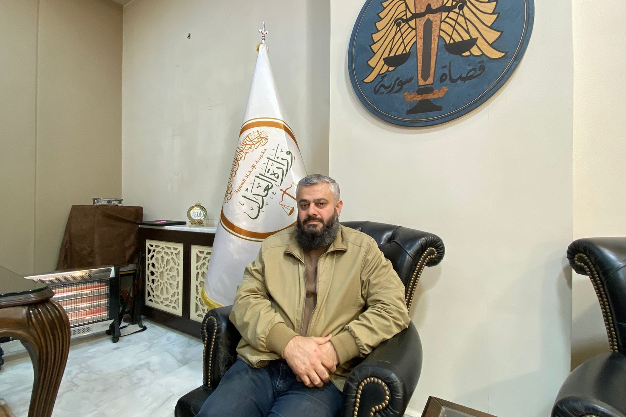 Vestido de jeans y campera beige, a su lado salta a la vista lo que define “la nueva bandera del Ministerio de Justicia”, que es sugestivamente blanca, como la de los talibanes. Sobre su escritorio hay un Corán y, en unos estantes, las alfombritas para rezar hacia la Meca. En el suelo, medio escondido, se ve un chaleco antibala verde militar con un cargador en uno de sus bolsillos. El nuevo juez supremo de Alepo, miembro de HTS, admite que fue antes de Al-Nusra, grupo terrorista asociado a Al-Qaeda que también se sumó a la oposición rebelde islamista. Sin convencer demasiado, niega haber sido un combatiente.